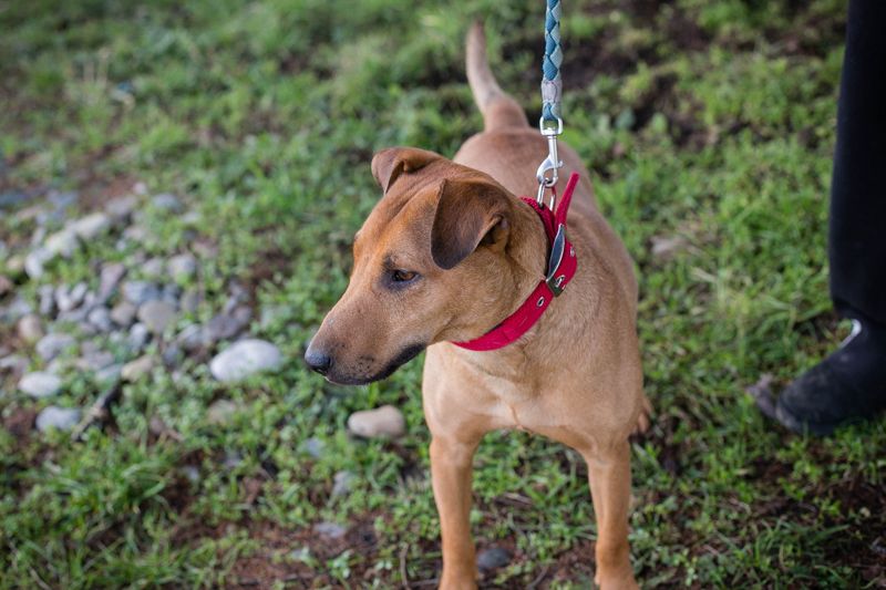 Wir waren mit ihm bereits im Trainingsgelände und diese willkommene Abwechslung scheint ihm sehr zu gefallen. Er ist auch dort interessiert unterwegs, aber immer mit Blick zu den Menschen. Dort hat er auch die erste Bekanntschaft mit der Leine gemacht, und seit diesem Zeitpunkt geht er sehr gerne Gassi.