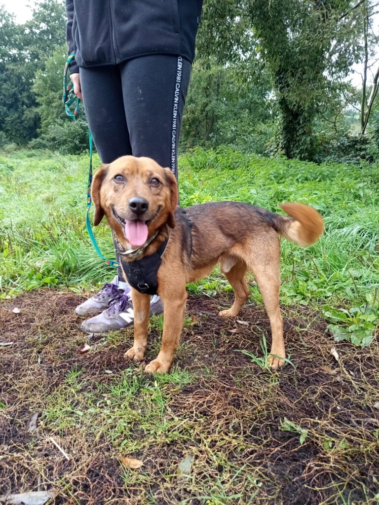 Bailey genießt jeden einzelnen Schritt, den er in Freiheit verbringen kann, er liebt Spaziergänge und er akzeptiert die Leine und auch die Nähe des Menschen. Bailey ist glücklich und zufrieden.