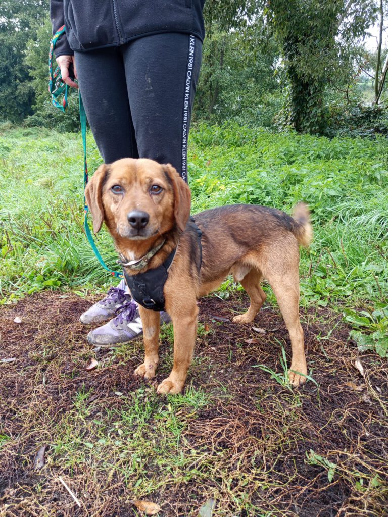 Viele lange Jahre lebte Bailey einsam und verlassen in einem Garten. Er hatte keine Kontakte zu Menschen oder zu Artgenossen. Er kannte die Welt außerhalb des Gartenzauns nicht, und zu allem Überfluss war er auch noch mit einem dicken Seil an einem Pfosten angebunden. Natürlich war seine Versorgung entsprechend schlecht. So verging für Bailey Tag um Tag, allerdings hat Bailey niemals die Hoffnung verloren und immer von einem besseren Leben geträumt. Und Mitte September 2025 war es dann für Bailey so weit. Der Tierschutz wurde auf ihn aufmerksam und Bailey durfte im Tierheim einziehen.