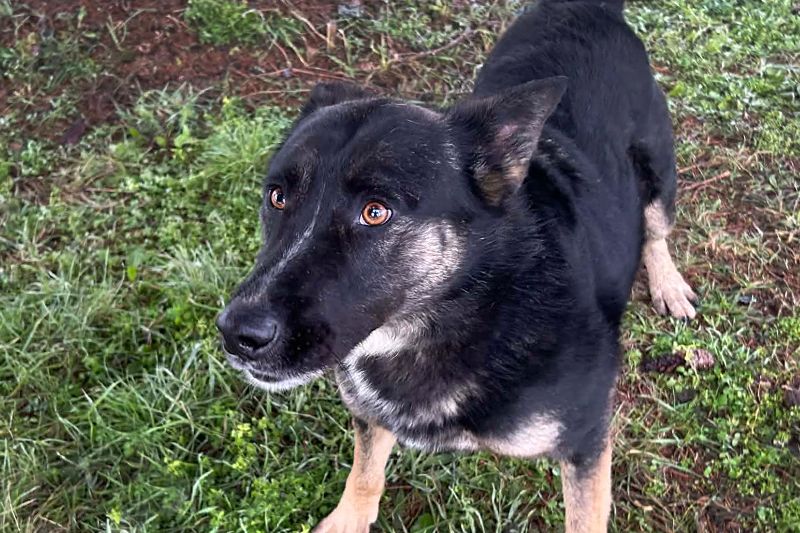Übrigens stammt Duster aus den Straßen eines benachbarten Dorfes und lebt heute im Tierheim mit Rüden und Hündinnen in einem Gehege zusammen.