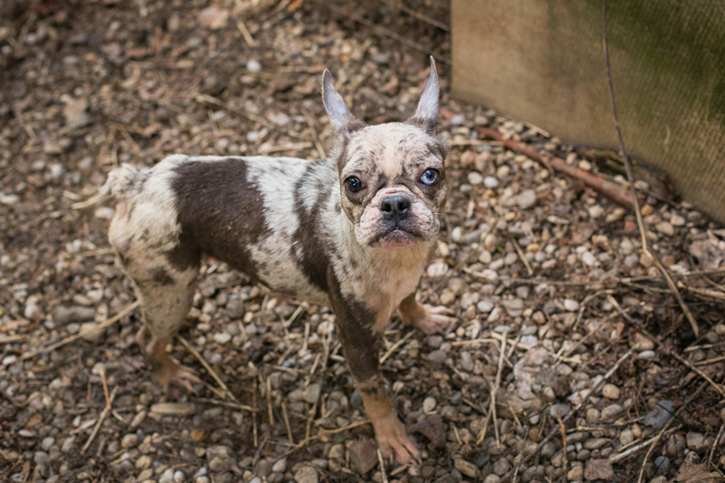 Pauline und zwei weitere Leidensgenossen mussten ihr Leben bei einem Züchter verbringen. Dort lebten die Tiere in unglaublich schlechten Verhältnissen. Die Tiere waren einfach nur verwahrlost, ungepflegt, sich selbst überlassen und mit Entzündungen und Parasiten übersäht.
