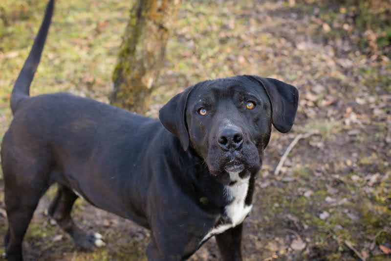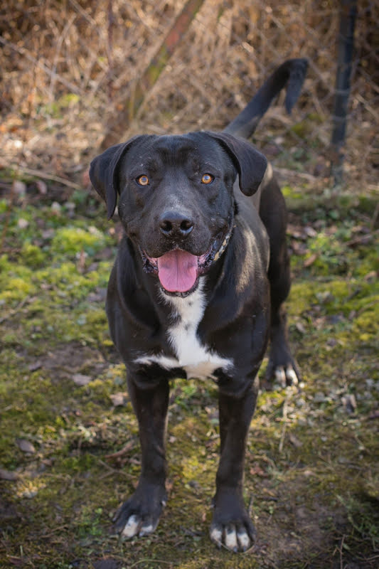 Piper ist ein großer und starker Labrador-Cane Corso Mischling, der aus einer Romasiedlung stammt.